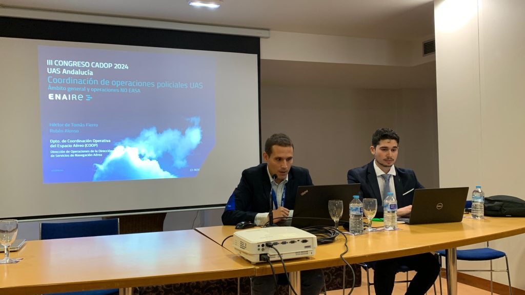 A continuación, todos los asistentes pudieron disfrutar de dos ponencias excepcionales llevadas a cabo por D. Héctor de Tomás Fierro y D. Rubén Alonso Mogrovejo ambos del equipo de Coordinación de ENAIRE principal proveedor de servicios de navegación aérea y de información aeronáutica en España, el cuarto en Europa por volumen de tráfico y uno de los más importantes a nivel mundial. Como entidad pública empresarial dependiente del Ministerio de Transportes, Movilidad y Agenda Urbana gestionamos el espacio aéreo español sobre un territorio de 2.190.000 kilómetros cuadrados, siendo el proveedor de servicios de comunicaciones, navegación y vigilancia en todo el espacio aéreo español y en los aeropuertos de la red Aena.
