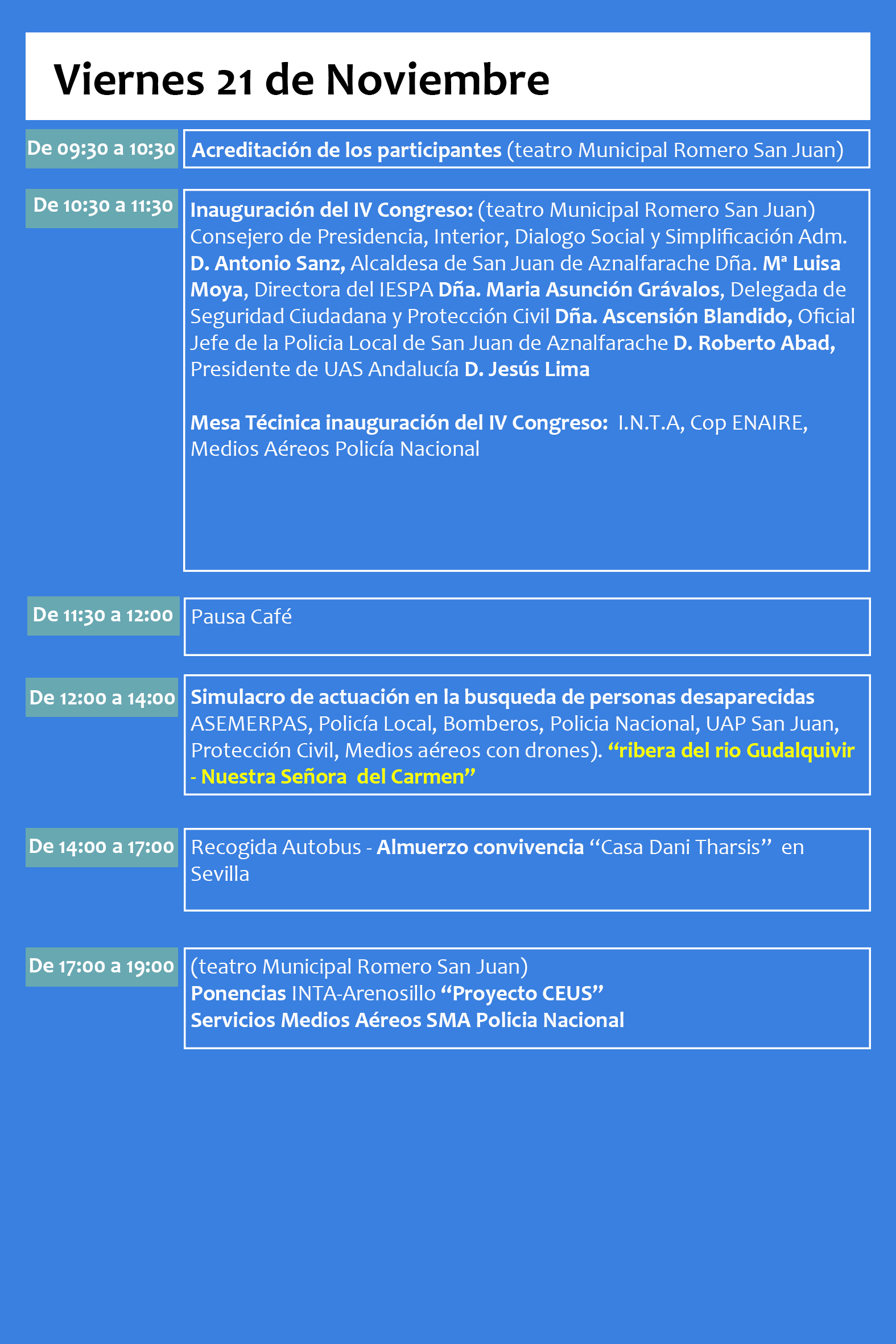 Se ha preparado por parte del Ayuntamiento de San Juan de Aznalfarache  un programa paralelo, para asistentes y acompañantes.